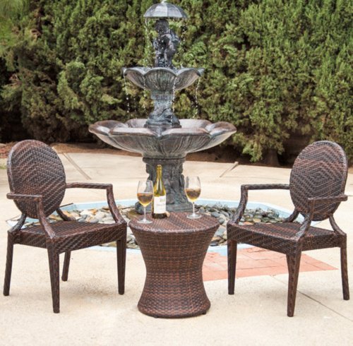 Table features a tempered glass top, wicker bistro set that makes your patio the perfect place for morning coffee or afternoon iced tea. Midnight sands finish, This attractive wood collection sets up in a snap for a quiet dinner on the patio ... Access This Document